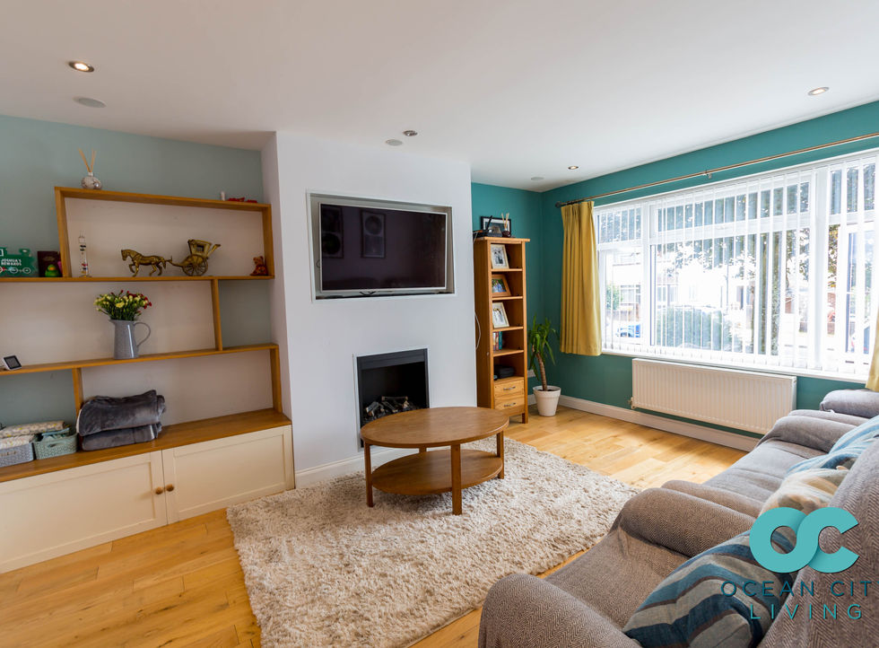 To the front of the property there is a large driveway with parking for up to 3 vehicles. Entrance to the property is gained via the porch which leads into the hallway, with living room to the right hand side and large kitchen/diner to the rear. The living room has a double glazed window to the front, electric fire set within the chimney breast, radiator, oak flooring and ceiling mounted surround sound speakers and spotlights.